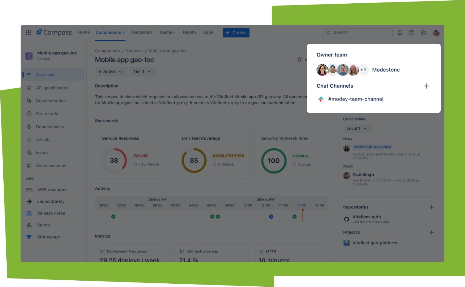 Easily identify who owns specific software components, and every piece of work your team needs to release.