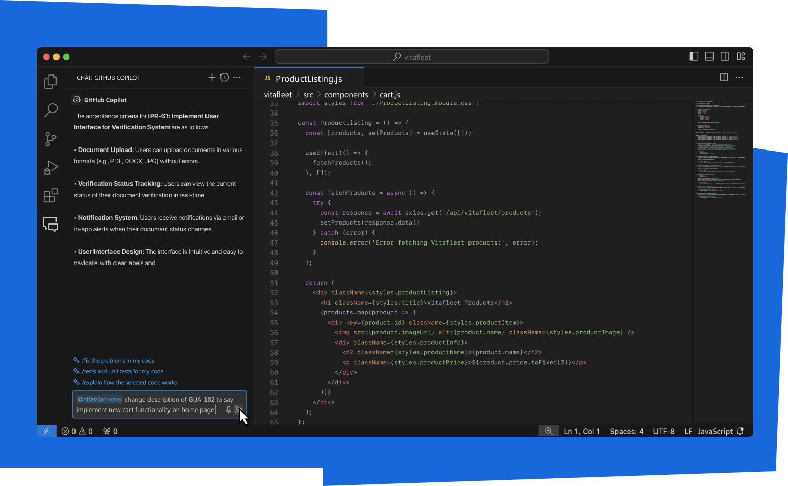Bring the power of the Atlassian platform to wherever you work, with Rovo, Jira and other tools embedded right into VSCode, GitHub Copilot, and Slack.